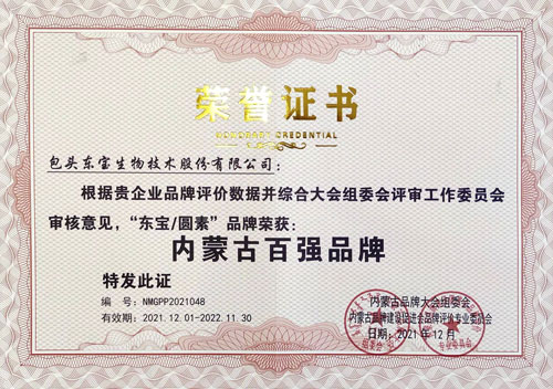 品牌企業(yè)代表及自治區(qū)發(fā)改委、農(nóng)牧廳、工商聯(lián)等單位領(lǐng)導(dǎo)、各大主流媒體記者等150余人參加了大會和論壇,大會進(jìn)行網(wǎng)絡(luò)媒體直播,點(diǎn)擊量達(dá)125萬余人次。會上發(fā)布了“2021年度內(nèi)蒙古品牌價(jià)值評價(jià)信息數(shù)據(jù)”和“2021年度內(nèi)蒙古百強(qiáng)品牌價(jià)值評價(jià)分析報(bào)告”,并向獲得2021年度內(nèi)蒙古百強(qiáng)(優(yōu)秀)品牌企業(yè)代表頒發(fā)牌匾、證書,東寶生物榮獲《內(nèi)蒙古百強(qiáng)品牌》。